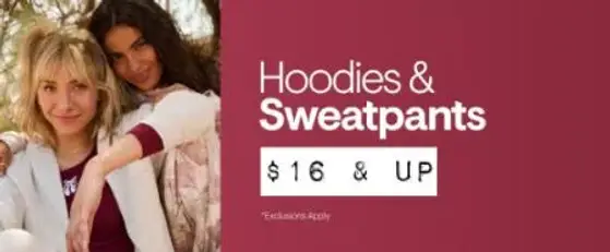 Hurry in and save! Shop in store and get $16 & up on hoodies & sweatpants.