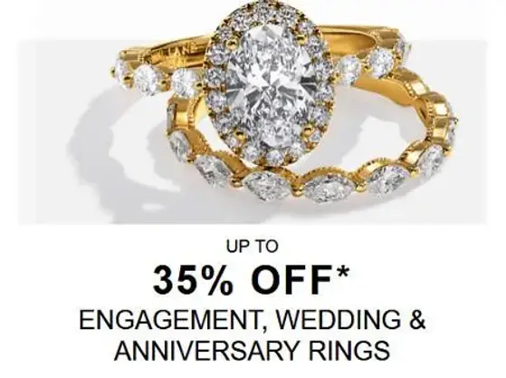 Grab this deal now before it's gone! Shop in store and get up to 35% off engagement, wedding, and anniversary rings.