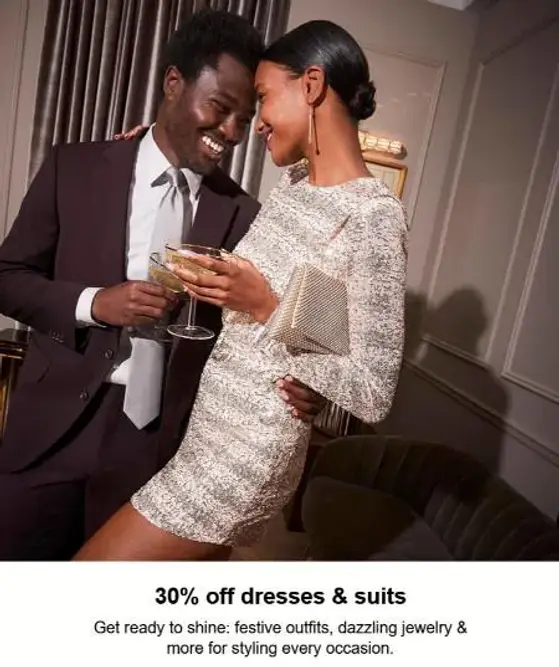 Hurry! Shop in store and get 30% off dresses & suits.