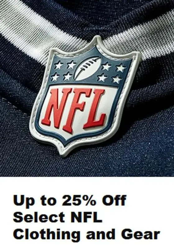 Don't miss this! Shop in store and get up to 25% off select NFL Clothing and gear.
