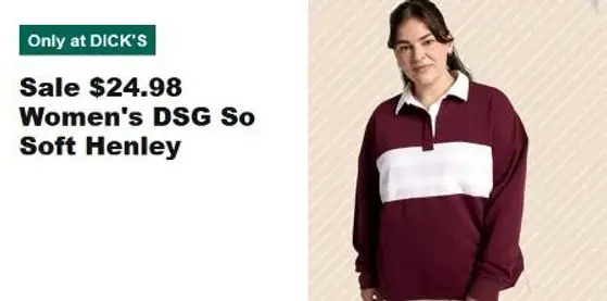 Act fast! Shop in store and get women's DSG So Soft Henley now for only $24.98.