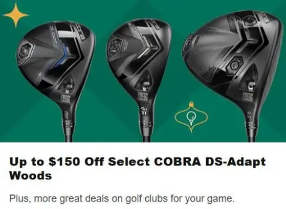 Great save! Shop in store and get up to $150 off select COBRA DS-Adapt Woods. Plus, more great deals on golf clubs for your game.