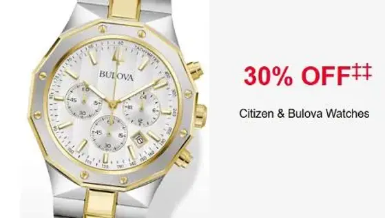 Hurry in store and get 30% off Citizen & Bulova watches.