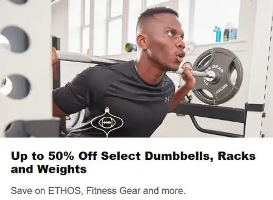 Save big now! Shop in store and get up to 50% off select dumbbells, racks and weights.