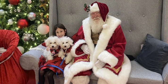 All pets must be on a leash, in a carrier, or held by the owner at all times. Owners must sign a release prior to visiting Santa.